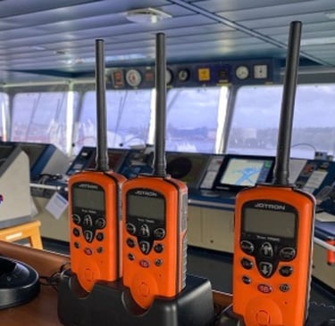 Professional provisioning, inspection, and testing of SART, EPIRB, and Two-Way VHF equipment to ensure operational readiness, compliance with IMO regulations, and full adherence to maritime safety standards.